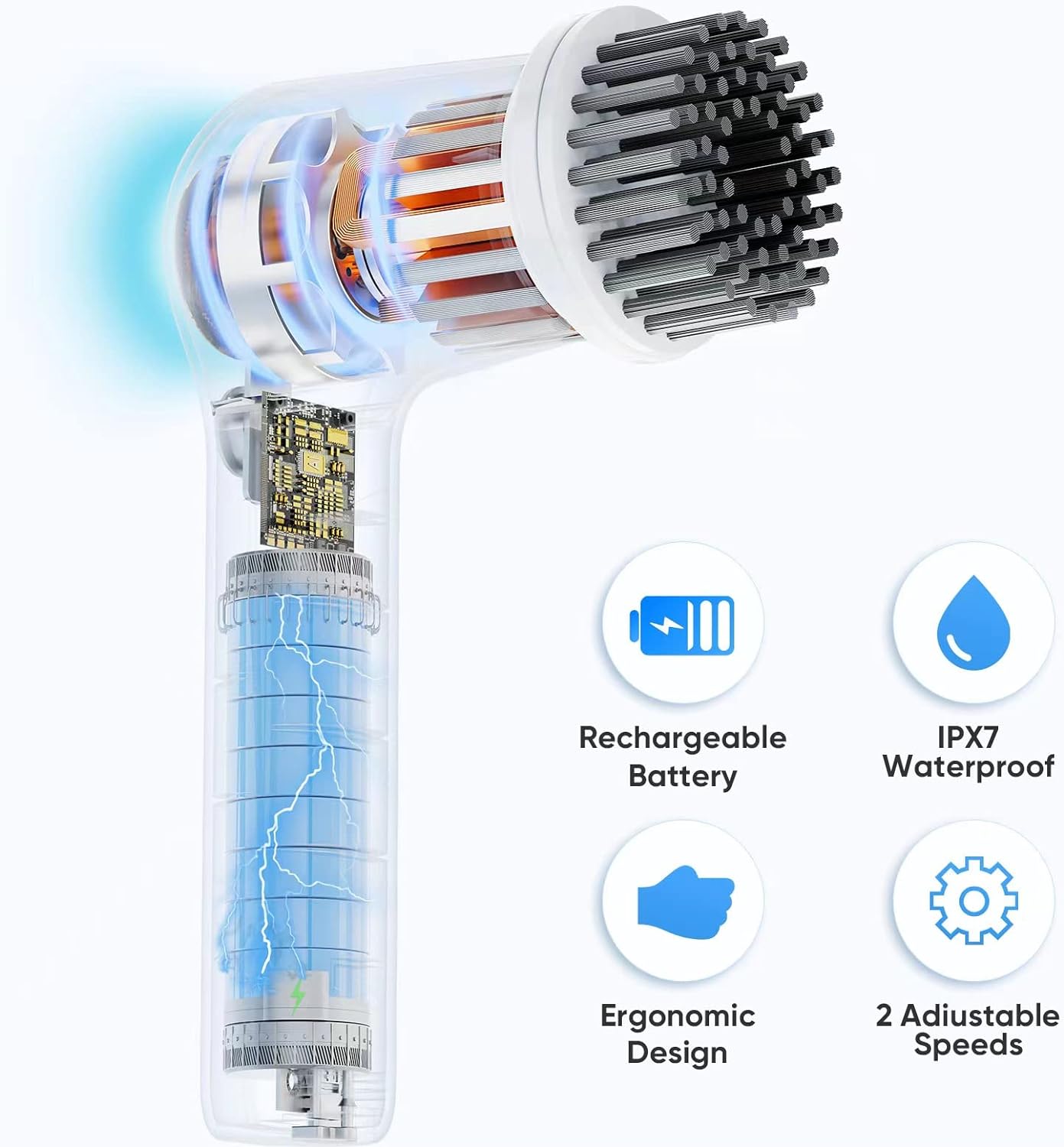 EZ Scrub Pros ergonomic, anti-slip design makes cleaning pain-free for your hands! The fast-charging, 2500mAh battery gives 120 minutes of long-lasting power that beats dirt and competitor brands. It also has a nifty LCD screen that tells you how much power you have.